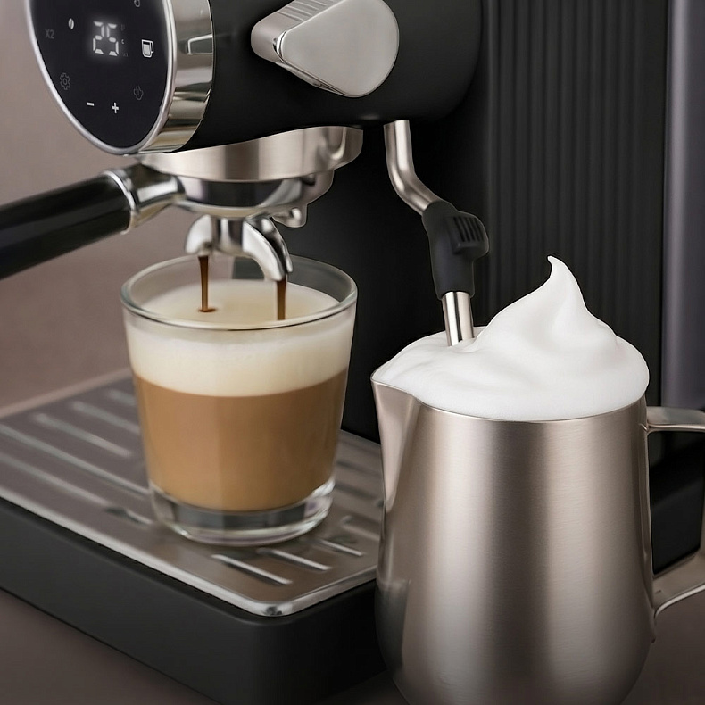 Итальянская профессиональная помпа с давлением 19 бар обеспечивает полноценную экстракцию, раскрывая все оттенки вкуса и формируя плотную крема, характерную для настоящего эспрессо. Благодаря высококачественным компонентам каждая чашка получается сбалансированной и выразительной — как у лучших бариста Италии.