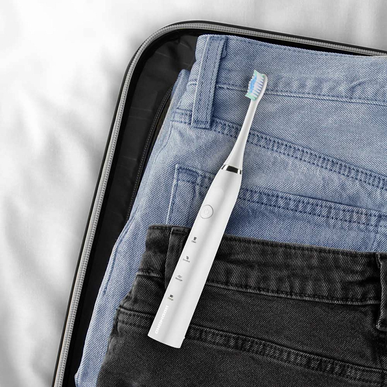 Влагозащита степени IPX7 позволяет чистить зубы прямо в душе и промывать щетку под водой, если вы испачкали ее пастой. Корпус щетки не боится даже недолгого погружения.