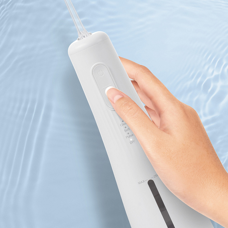 Корпус прибора отличается герметичностью и хорошей влагоустойчивостью со степенью защиты IPX7. Вы можете не только держать ирригатор мокрой рукой, но и пользоваться им в душе.