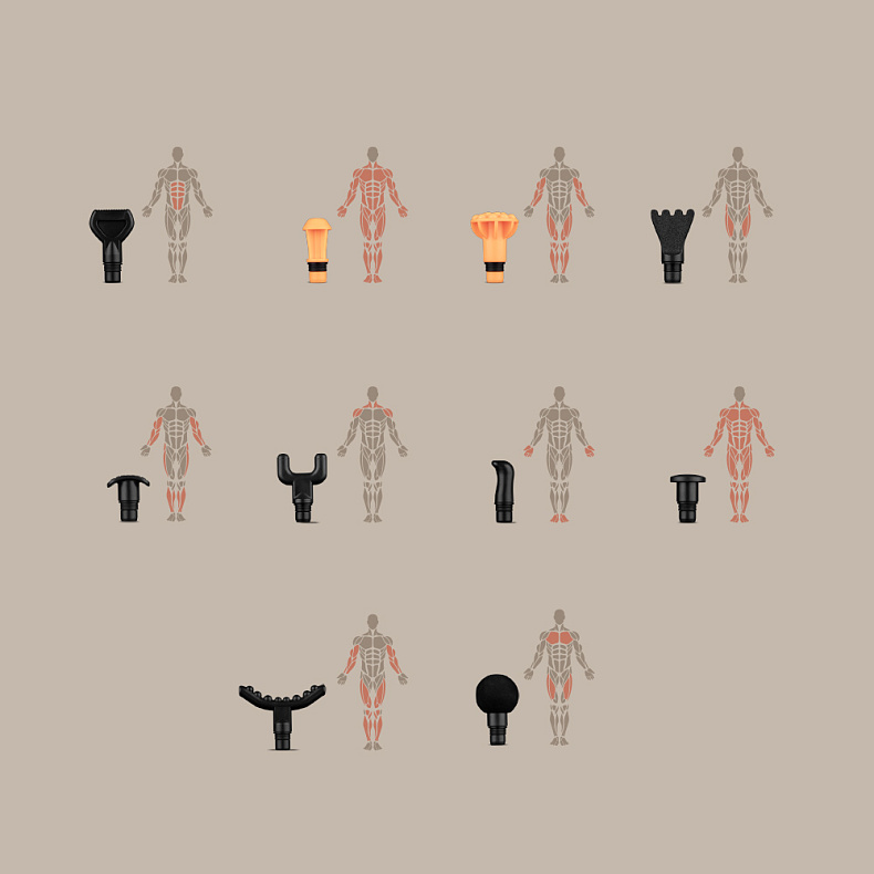 В комплект входит 10 насадок для точной и эффективной проработки всего тела. Каждая из них ориентирована на конкретные зоны — от мышц спины и ног до стоп, шеи и чувствительных участков. Такой подход позволяет облегчить боль в глубоких тканях, улучшить кровообращение и добиться максимального эффекта от массажа. Комплексный подход делает массажер BM7200 универсальным инструментом для восстановления — от спортивных тренировок до ежедневного ухода за собой.