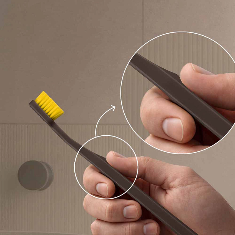 Ручка щетки разработана с учетом анатомии руки. Она не скользит в пальцах и естественным образом направляет ваши движения. Это позволяет контролировать нажим, защищая десны от излишнего давления и делая процесс чистки более осознанным.