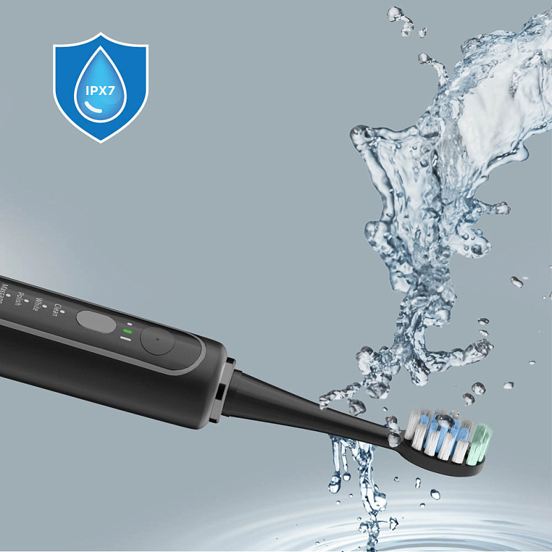 Корпус прибора соответствует стандарту IPX7, что позволяет ему выдерживать кратковременное погружение в воду. Это обеспечивает надежную защиту от брызг и загрязнений. Например, после утренней чистки достаточно промыть устройство под струей воды.
