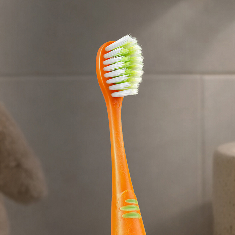 Мягкая нейлоновая щетина Dupont премиального качества деликатно и эффективно очищает молочные зубы и защищает десны. Вы можете быть спокойны за здоровье и комфорт вашего ребенка, даже если он только учится чистить зубы самостоятельно.