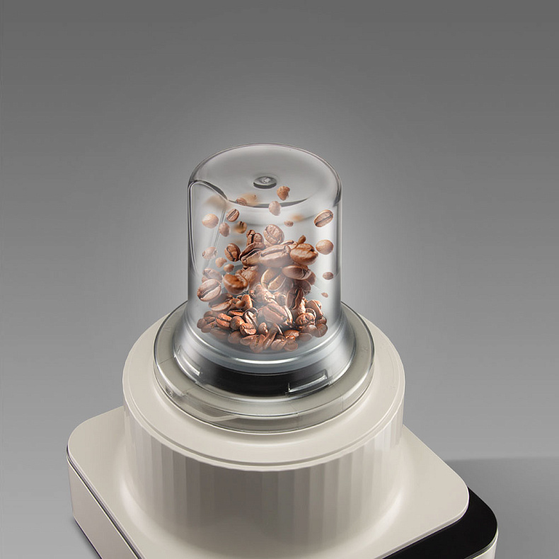 В комплекте идет стеклянная колба — просто наполните ее зернами и присоедините к комбайну. Утренний напиток из свежемолотых зерен всегда приятнее, чем из растворимого кофе. Он ароматнее и с богатым вкусом.