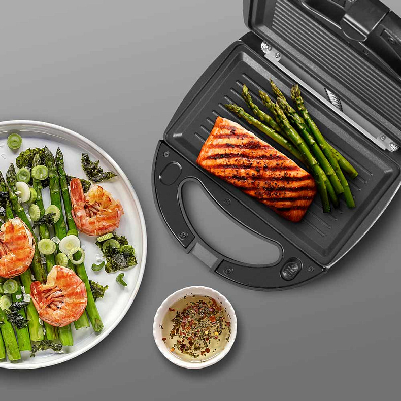 На них вы быстро поджарите овощи, сосиски или креветки — для сэндвичей, тарталеток и теплого салата. Для замены панелей на нужные хватит пары секунд.