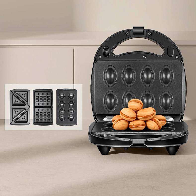 В комплекте к мультипекарю вы найдете 3 набора съемных панелей, которые с легкостью заменят сразу несколько приборов и сэкономят место на кухне: