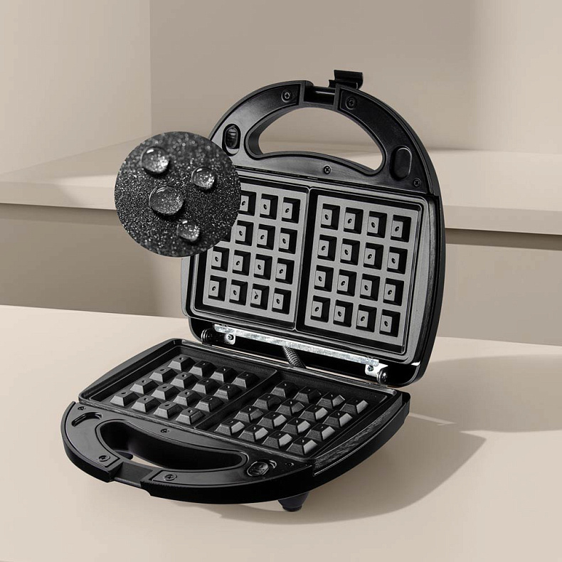 Высококачественное антипригарное покрытие предотвращает прилипание продуктов. Достаточно добавить в тесто всего несколько капель масла, чтобы вафли легко извлекались из панелей. За покрытием просто ухаживать — панели достаточно вымыть мягкой губкой с обычным средством для посуды.