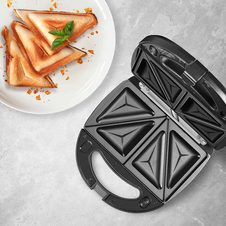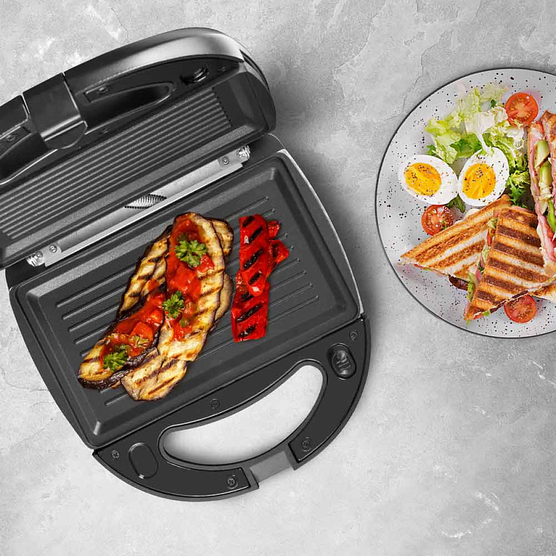 Мультипекарь позволит готовить сливочные вафли, сэндвичи с хрустящей корочкой и ароматные овощи на гриле. Панели легко заменить, поэтому экспериментируйте, чтобы порадовать близких сытным и вкусным завтраком.