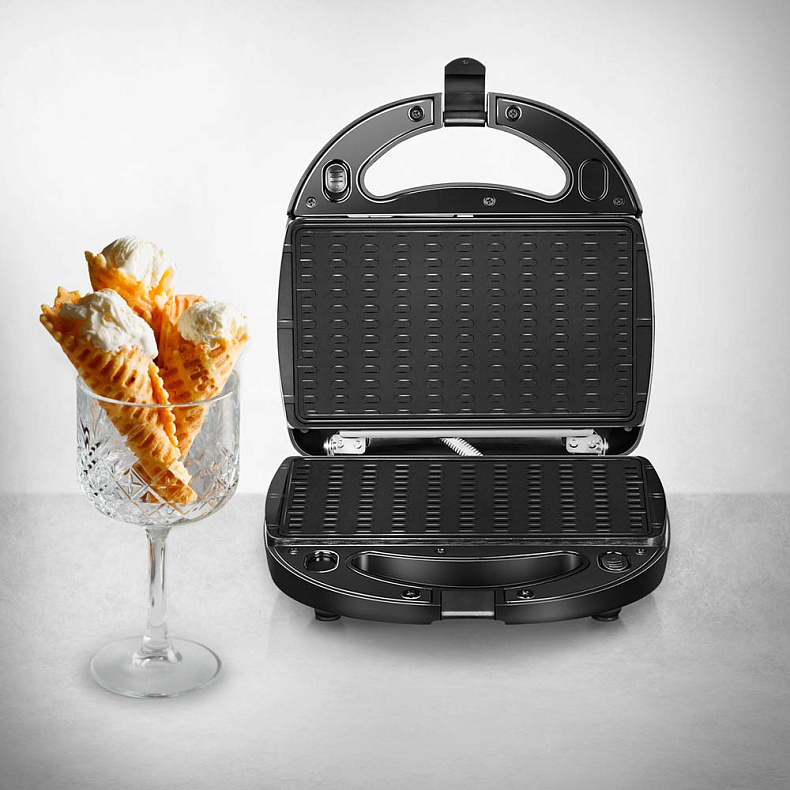 Благодаря съемным панелям для тонких вафель вы с легкостью сделаете трубочки с заварным кремом или со сгущенкой. Порадуйте близких вкусным угощением из натуральных свежих ингредиентов.