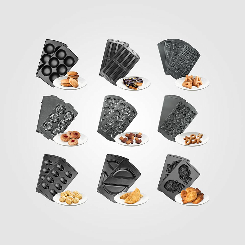 Хотите приготовить на мультипекаре орешки со сгущенкой? Просто купите дополнительные фирменные панели из нашего ассортимента. Они съемные и легко меняются, поэтому вы сможете приготовить выпечку на любой вкус.