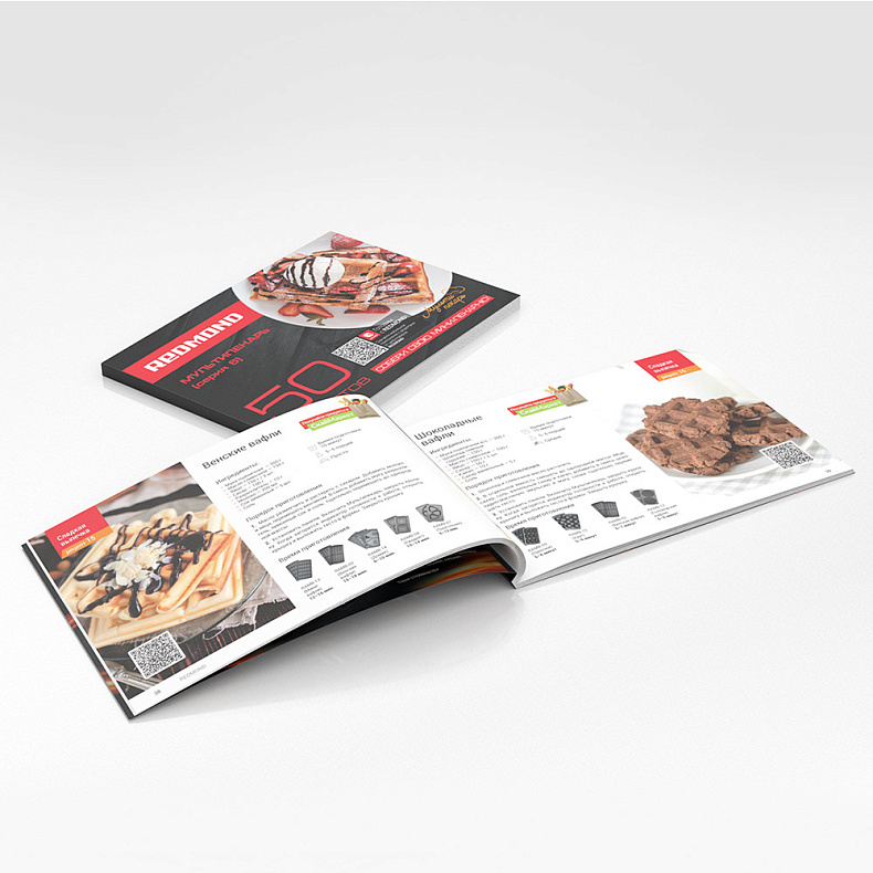 Устройство укомплектовано книгой, которая содержит 50 лучших рецептов с пошаговыми инструкциями от поваров REDMOND.