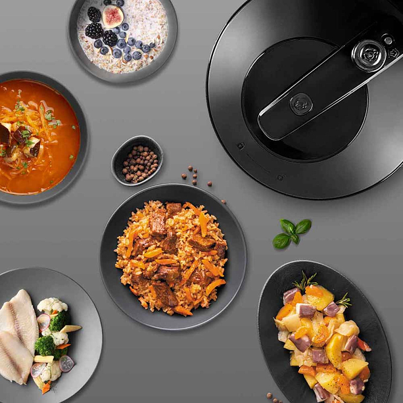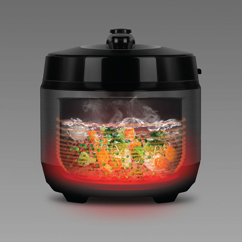 Еда будет готова в 3 раза быстрее, чем на плите, и в 2 раза быстрее, чем в обычной мультиварке. Сокращение времени термической обработки позволяет по максимуму сохранить питательные вещества и витамины в продуктах, а сами блюда получаются очень нежными.