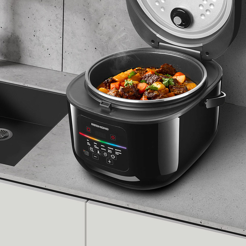 В книге 120 рецептов: от каш и гарниров — до мясных и рыбных блюд. Если вы опытный кулинар, скачайте приложение REDMOND Шеф — в нем более 10 000 рецептов, адаптированных именно под ваш прибор.