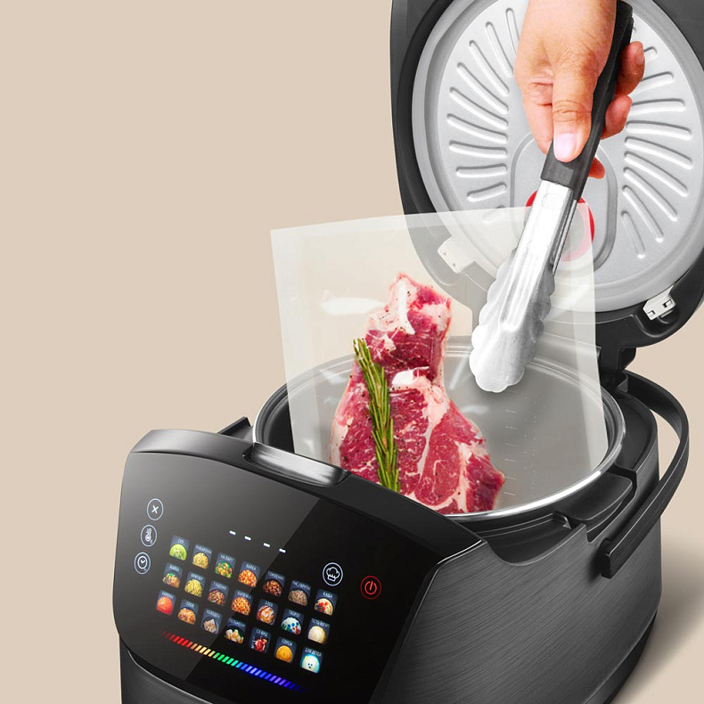 MC101 позволяет готовить продукты при невысокой температуре, как в медленноварке. Так пища получается сочной и насыщенной. Используйте программы ТОМЛЕНИЕ, ТЕСТО/ЙОГУРТ и СУ-ВИД, чтобы приготовить нежное и аппетитное блюдо.