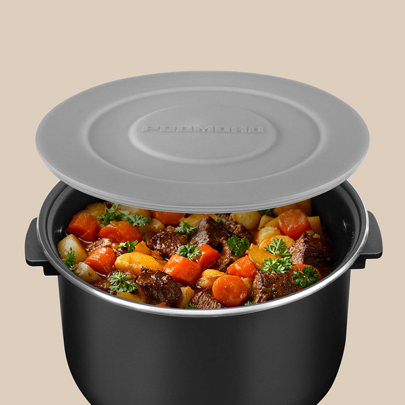 Прибор имеет 23 автоматические программы для тушения, варки, жарки, приготовления супа, плова, холодца, детского питания и других популярных блюд в одно касание. Они позволят сэкономить время и освободить вас от кулинарной рутины.