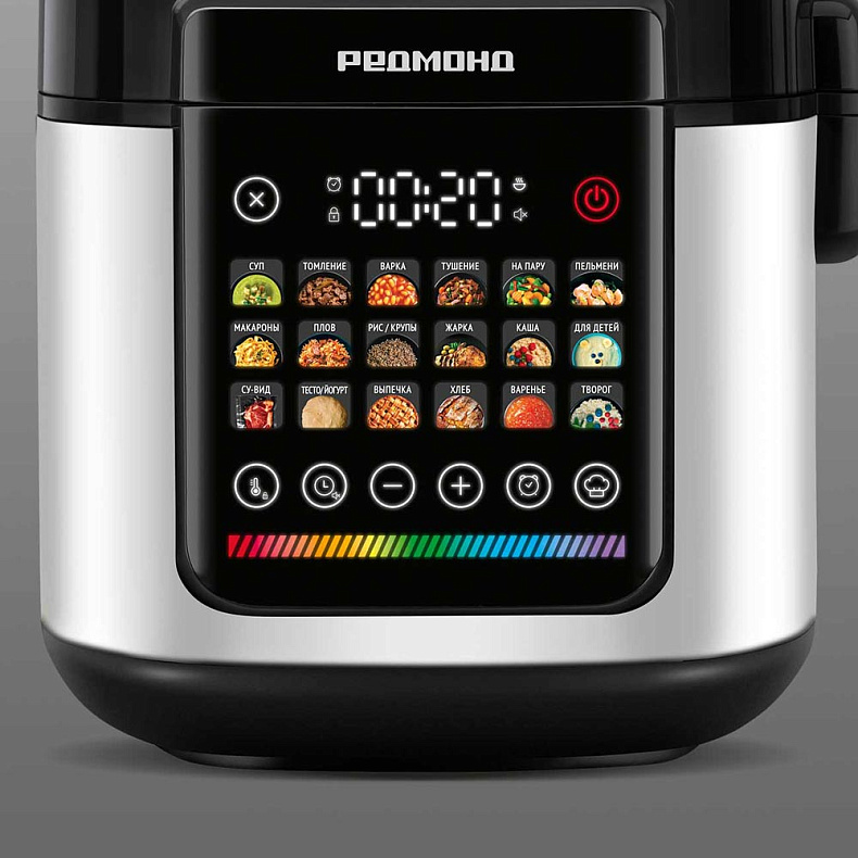 Четкие цветные изображения автопрограмм и иконки в виде соответствующих функций хорошо заметны сенсорном дисплее. Управлять мультиваркой будет просто, даже если вы делаете это впервые.