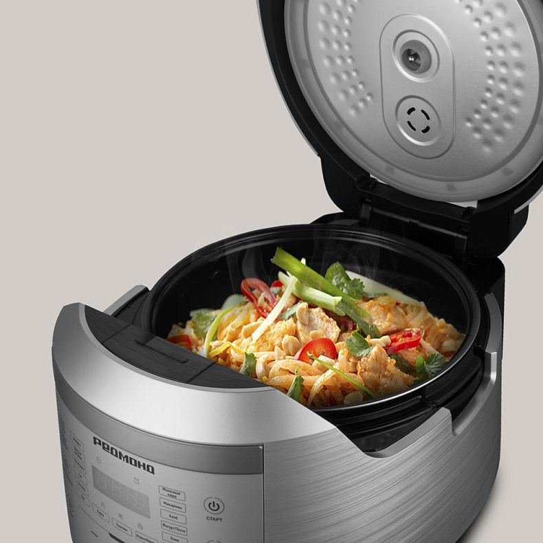 Красивый дизайн. Удобное управление. Готовит любые продукты. Нравится чаша из керамики. Проста в уходе. Есть книга рецептов. Радую своих близких разнообразными блюдами.