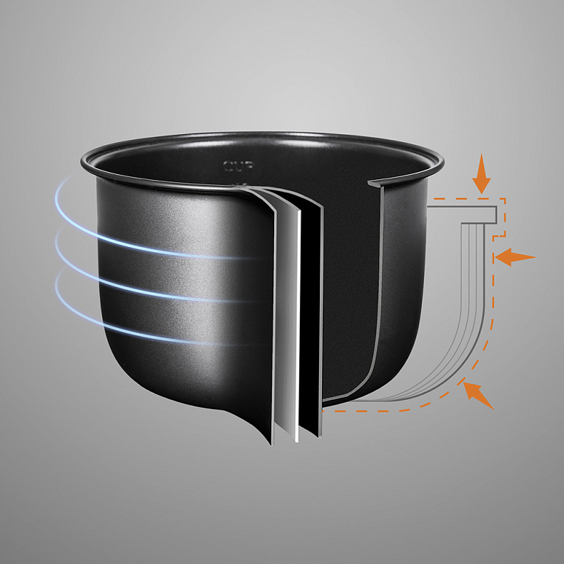 В чаше используется антипригарное покрытие DAIKIN®: готовьте полезные и диетические блюда почти без добавления масла. Для ухода достаточно промывать чашу под теплой водой.