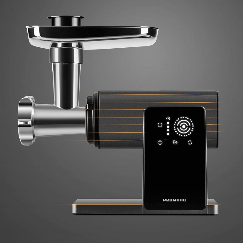 На дисплее — только нужная информация: время, кнопки реверса и режимов работы. Мясорубка управляется с сенсорной панели — запустить реверс или выключить прибор можно легким прикосновением.