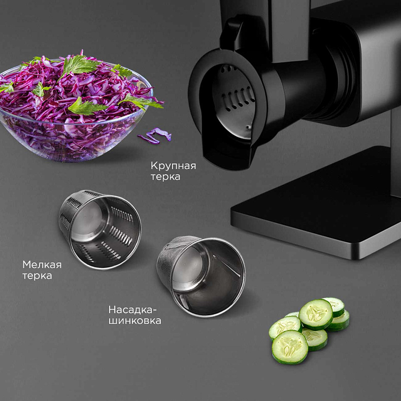 Насадки в комплекте упростят кухонный быт. Помогут сделать мясную и сырную нарезку и измельчат овощи для салата. Подготовка продуктов займет всего несколько минут. Пригодится, когда вечером планируется застолье или званый ужин.