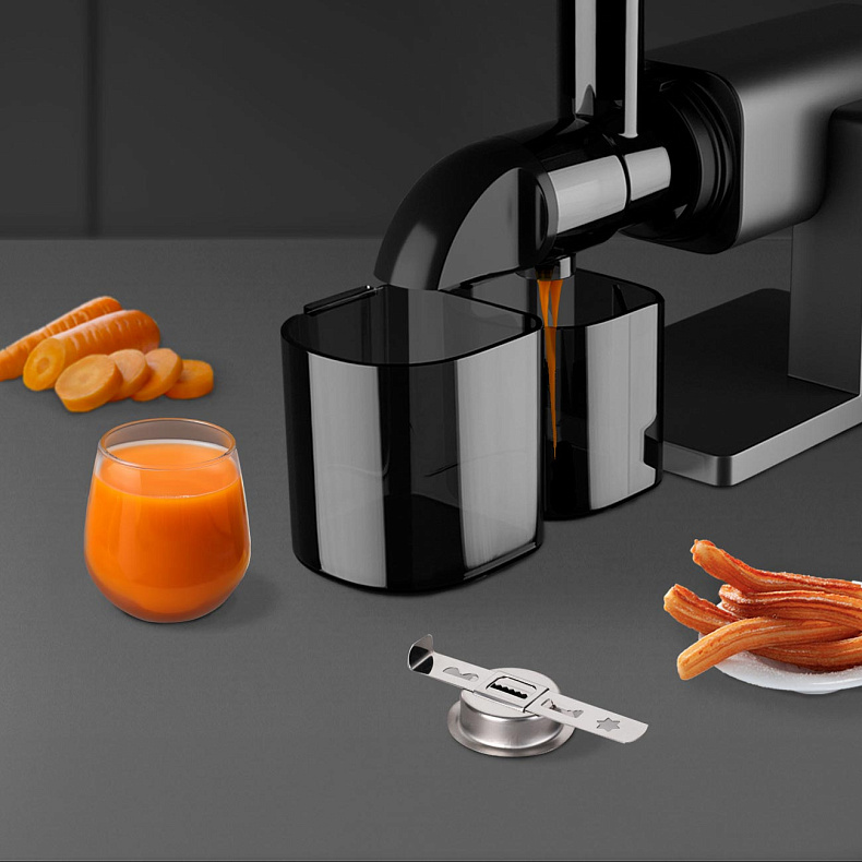 Насадка-соковыжималка позволит приготовить натуральные фреши. Получайте витамины из овощных, фруктовых и ягодных миксов. А устроить полдник поможет насадка для печенья. С ней сформировать сладости из теста просто и удобно.