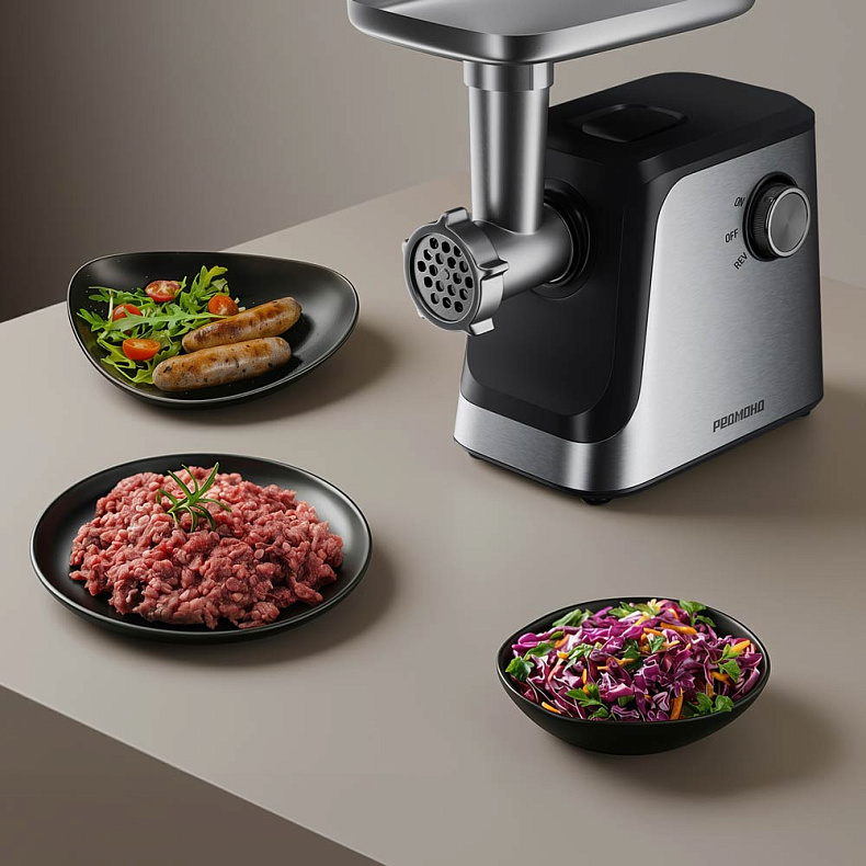 Мясорубка подходит тем, кто готовит в спешке. Благодаря мощности 1800 Вт она легко справляется с любым видом мяса, включая жесткие куски, а высокая производительность 2,2 кг/мин позволяет за несколько минут приготовить фарш на компанию из 5–10 человек или натереть овощи для детского пюре. Вы получаете идеальный результат не только быстро, но и без усилий.