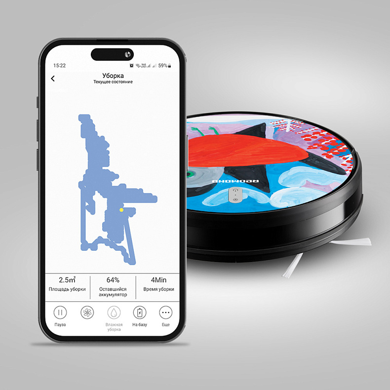 В приложении REDMOND Robot дистанционно управляйте движением пылесоса, планируйте уборку, регулируйте мощность всасывания, контролируйте параметры работы и уровень заряда аккумулятора.