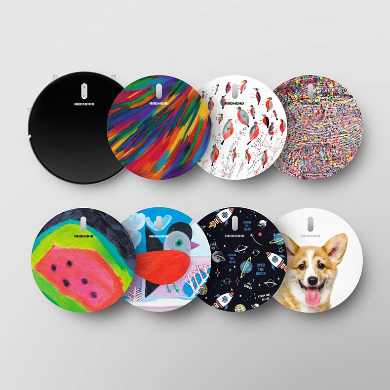 Уникальные съемные крышки*, часть из которых выполнена в коллаборации с особенными художниками из БФ «Перспективы», можно приобрести отдельно. С ними ваш робот-пылесос станет украшением квартиры.