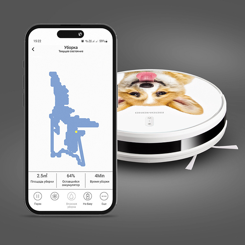 Через приложение доступен расширенный функционал умного прибора: вы можете выбрать определённую зону для уборки, задать день и время активации, регулировать уровень подачи воды и режим всасывания. Контролируй работу пылесоса и корректируй настройки в режиме реального времени!