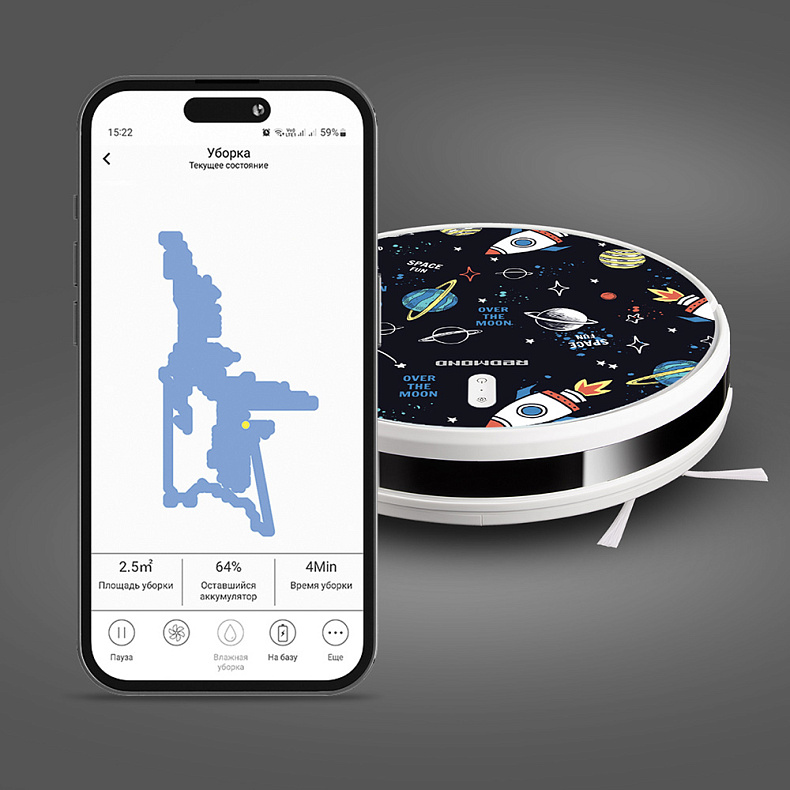 Управляйте роботом не только через пульт, но и со смартфона. Скачайте приложение REDMOND Robot, чтобы запланировать уборку, проверить уровень заряда и настроить мощность.