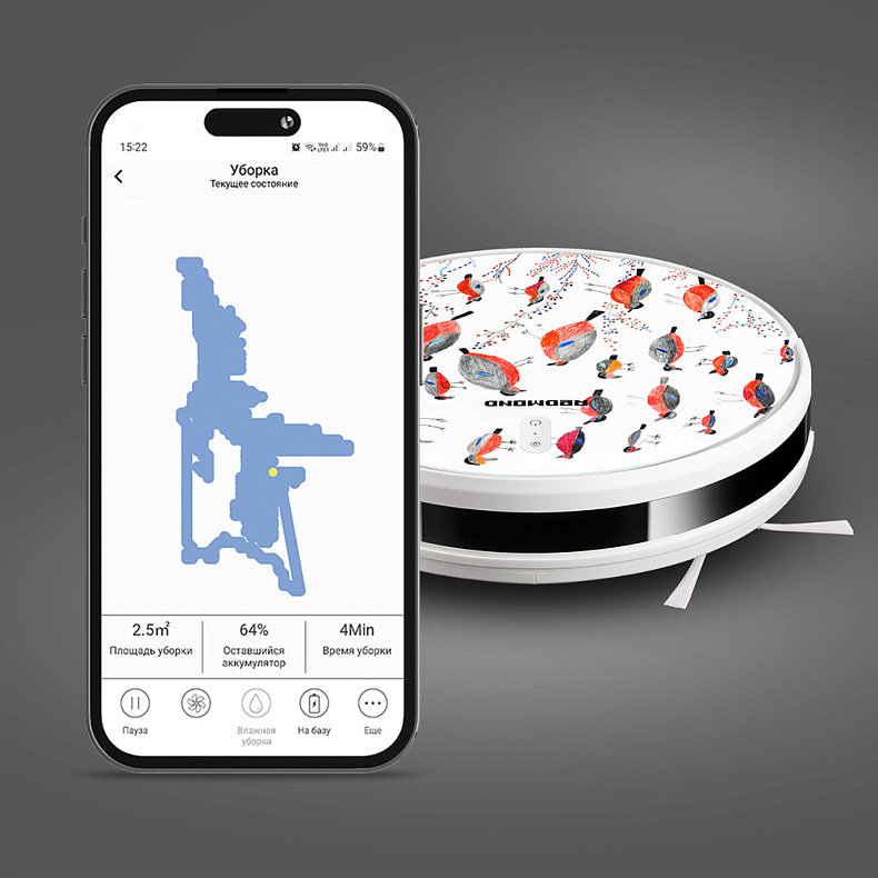 Управляйте роботом не только через пульт, но и со смартфона. Скачайте приложение REDMOND Robot, чтобы запланировать уборку, проверить уровень заряда и настроить мощность.