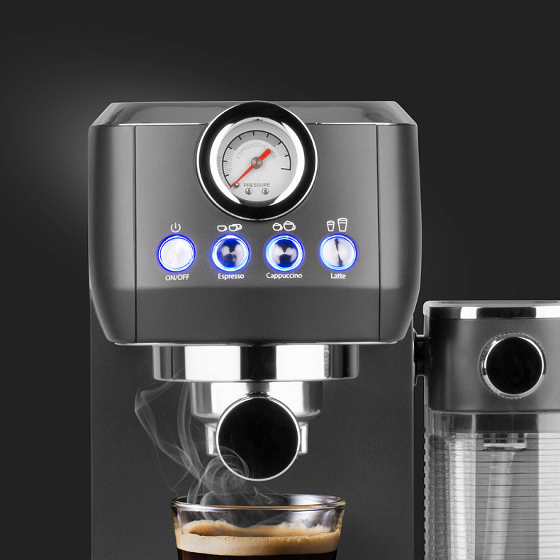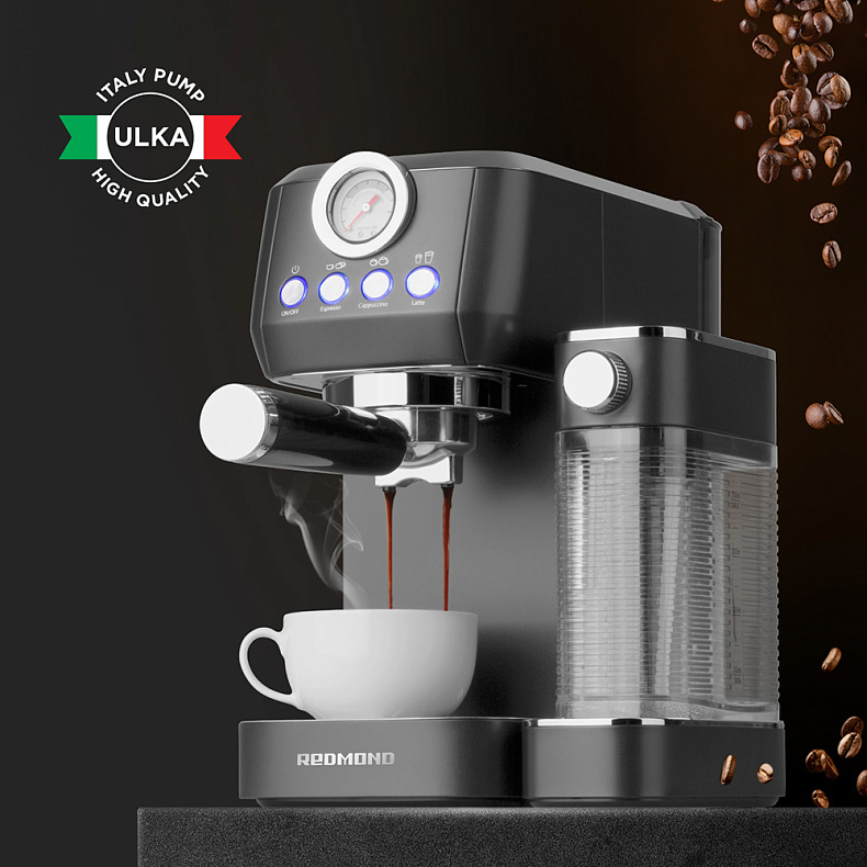Помпа качает воду из резервуара, чтобы она под давлением впитала весь вкус и аромат кофейных зерен. Итальянская помпа ULKA создает давление 20 бар, как в профессиональных кофемашинах.