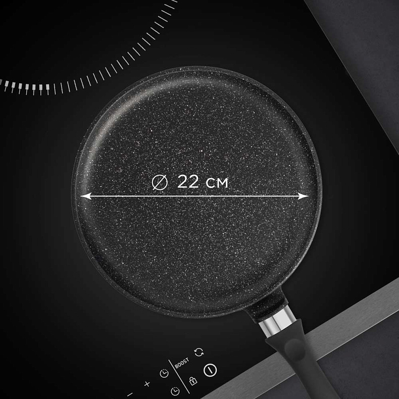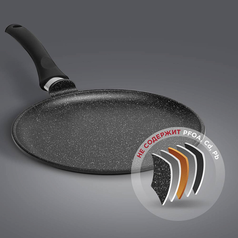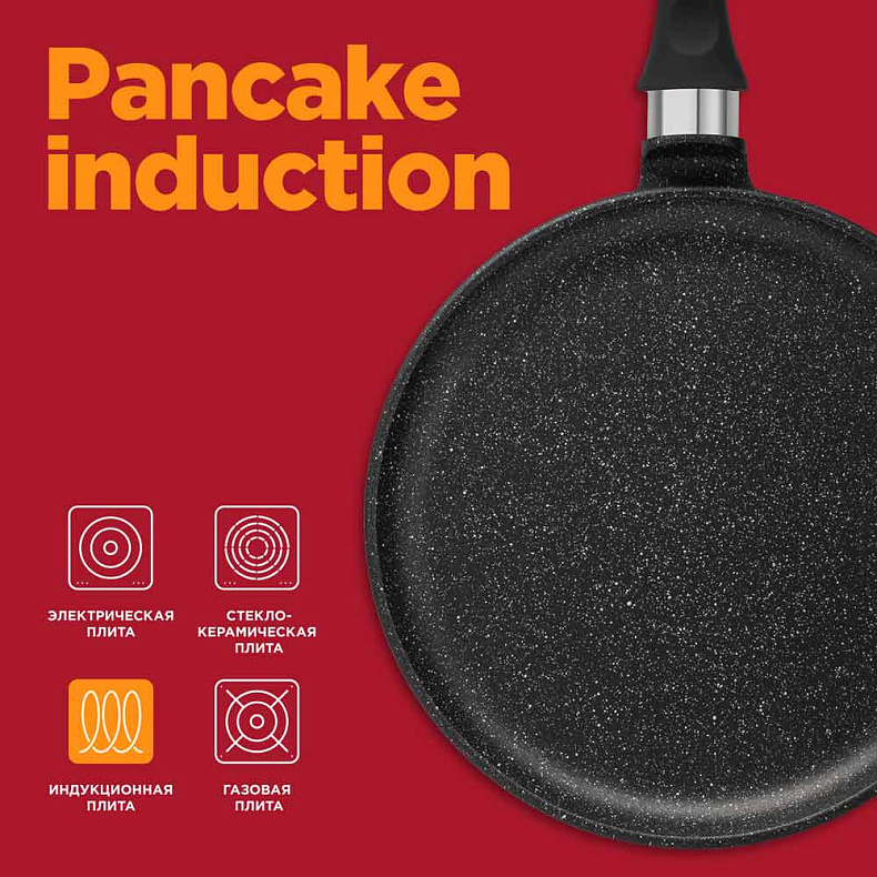 Сковорода для приготовления блинов совместима со всеми видами варочных поверхностей, в том числе индукционной. Она нагреется за считаные секунды — вы легко приготовите выпечку из жидкого теста или сырники.