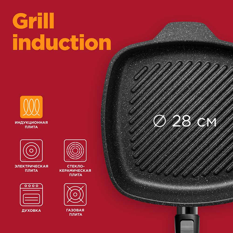 Сковорода-гриль индукционная REDMOND Black & Stone 28 cм PF5504 - фото - купить в интернет-магазине Редмонд