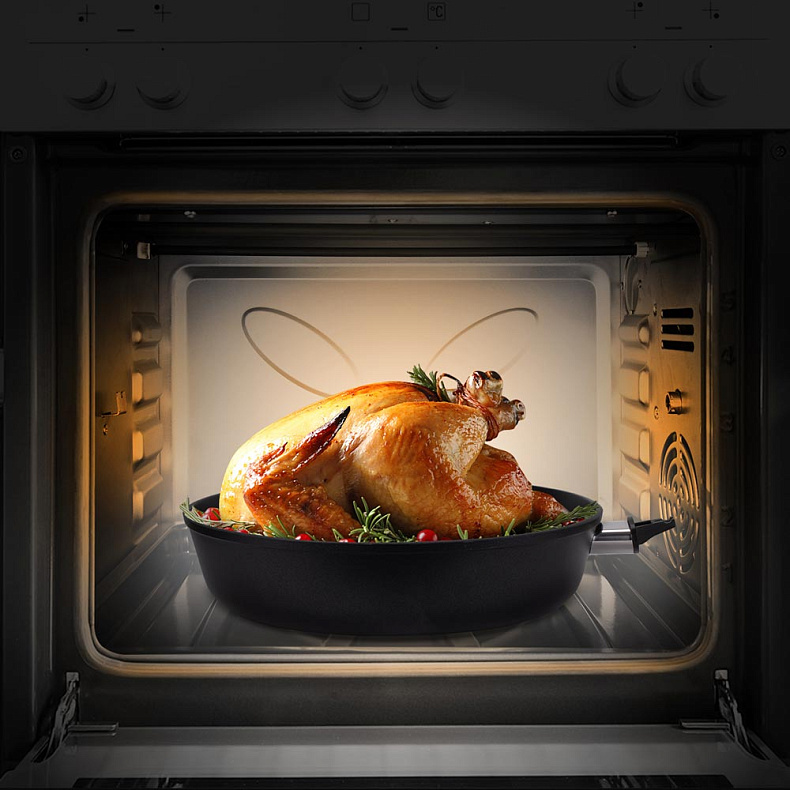 Сковорода предназначена для жарки, тушения и запекания в духовке — отличный вариант для приготовления различных блюд на каждый день. С ней вы сделаете жаркое, потушите овощи с мясом или рыбную запеканку.
