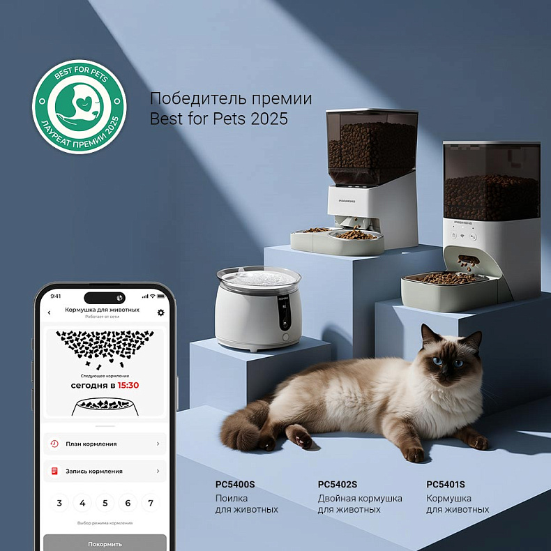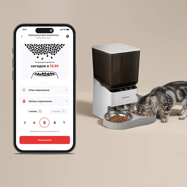 Коллекция РЕДМОНД Pets создана для того, чтобы сделать жизнь домашних животных комфортнее, а уход за ними — удобнее. Интеллектуальные кормушки и поилки берут на себя ежедневные рутинные задачи, обеспечивая питомца свежей порцией корма и чистой водой, даже когда вы не дома. Умные устройства работают в экосистеме Ready for Sky, что позволяет управлять ими прямо со смартфона. Есть возможность задавать расписание кормления, регулировать порции, отслеживать остаток корма или уровень воды.