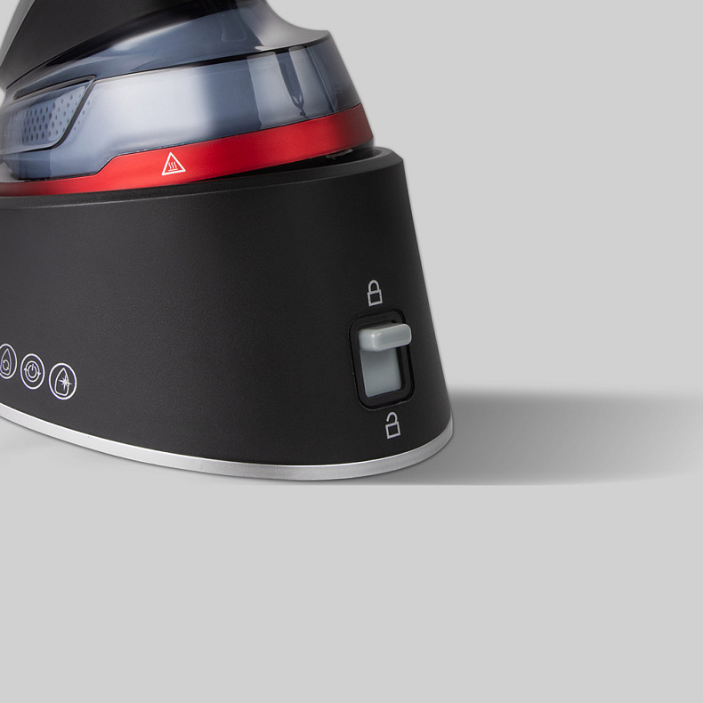 Отпариватель не упадет на пол или вам на ноги: в комплекте есть подставка с фиксатором. Поэтому хранить и использовать SH1636 безопасно. Подошва плотно прилегает к платформе, случайное опрокидывание исключено.