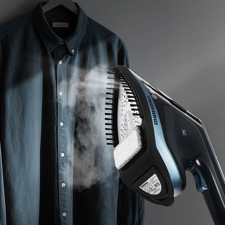 Отпариватель работает на минимальной и максимальной интенсивности. Вы сможете бережно ухаживать за деликатными тканями, а при необходимости справляться и с более плотными, такими как хлопок или лен.