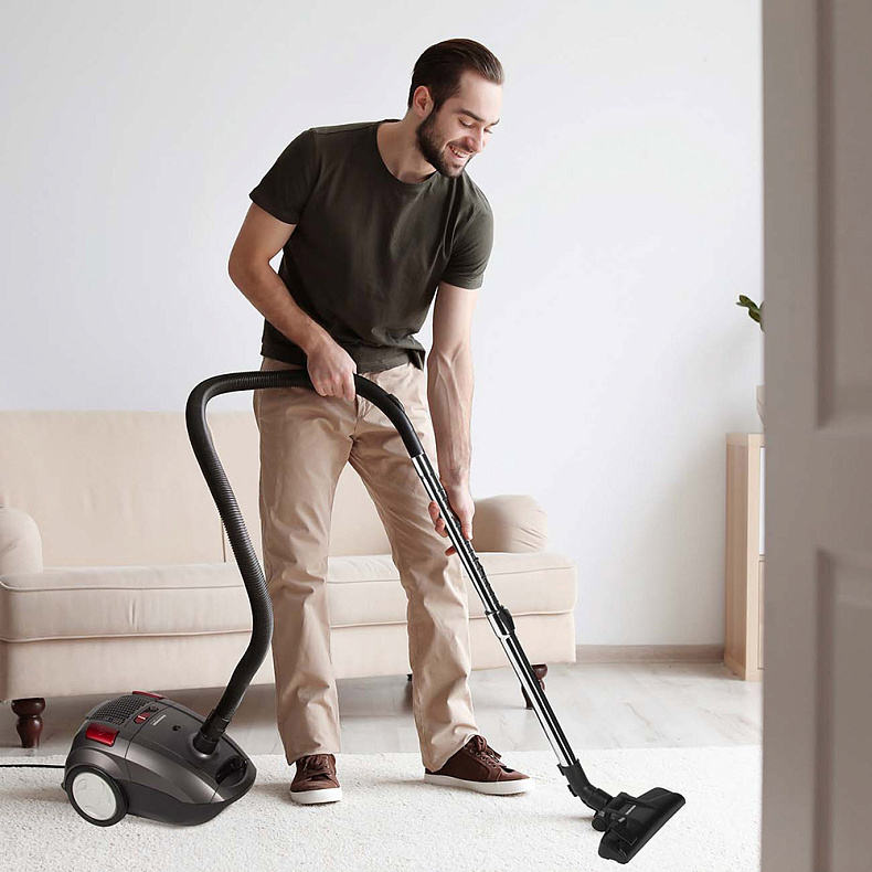 Несмотря на высокую мощность всасывания, модель довольно тихо работает. Шум не превышает 75 дБ — вы и ваши близкие можете не переживать, что устанете от громких звуков.
