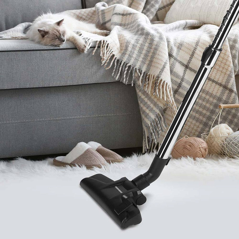 5 метров шнура хватит, чтобы спокойно прибраться в одной небольшой комнате, не переставляя устройство. Трубка-удлинитель даст возможность очистить пол даже под мебелью.