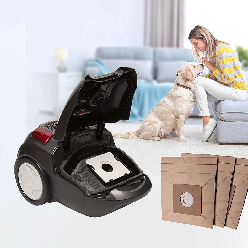 Многоразовый и вместительный. Хватит на несколько дней — не придется опустошать его каждый раз после уборки. Выполнен из качественного и плотного текстиля. Также в комплекте есть одноразовые мешки из бумаги.