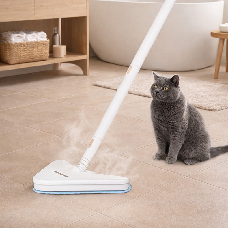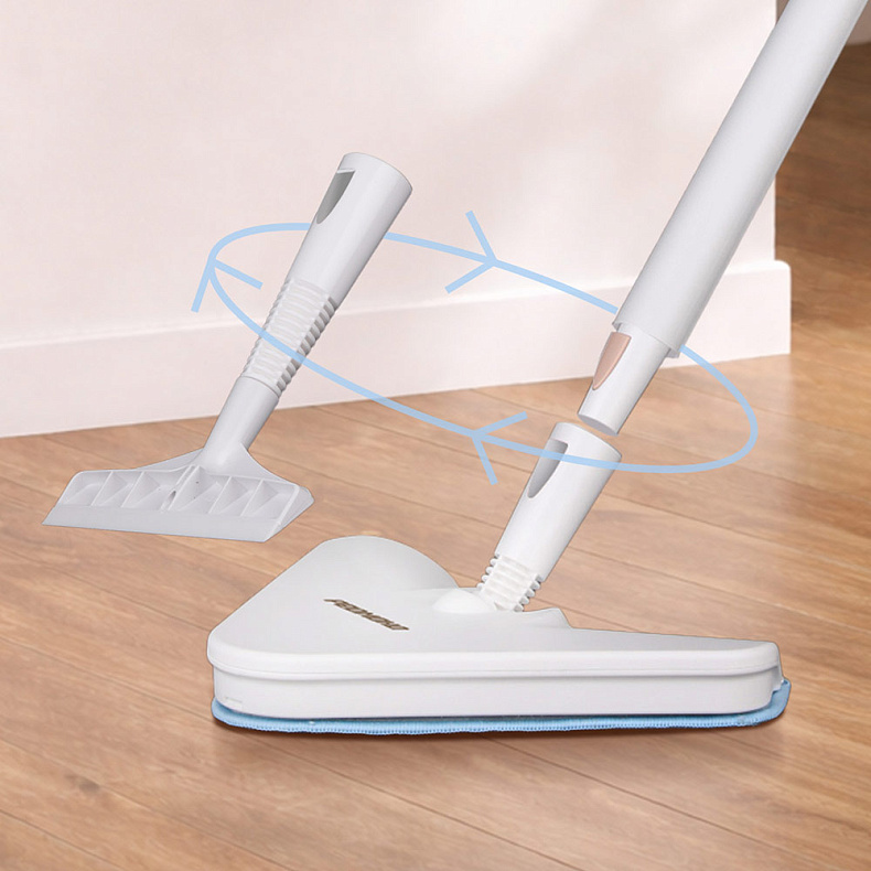 Насадки фиксируются надежно, но снимаются одним движением. Вы легко адаптируете паровую швабру под разные задачи, не прерывая процесс уборки. 5-метровый сетевой шнур обеспечивает свободу перемещения по комнате, а удобная эргономичная ручка снижает нагрузку на кисть.