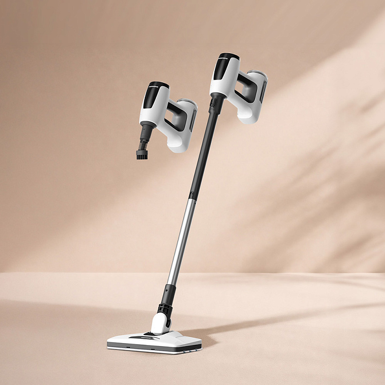 SC7001 объединяет в себе функции полноразмерной паровой швабры и компактного пароочистителя. Это позволяет быстро и эффективно поддерживать чистоту напольных покрытий, плитки, окон, зеркал, кухонных поверхностей и текстиля, не переключаясь между устройствами. Вес 2,7 кг делает уборку комфортной даже при длительной работе.