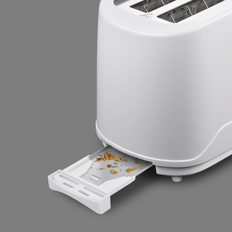 Чтобы хлебные крошки не засоряли механизм и не пригорали, в модели предусмотрен специальный поддон. Его легко извлечь и очистить.