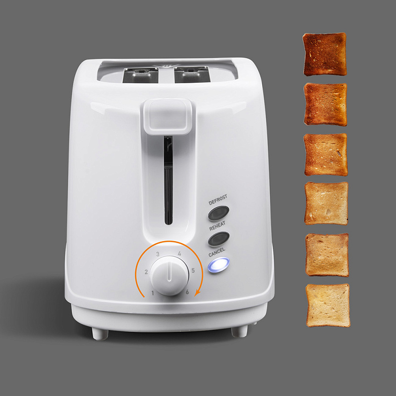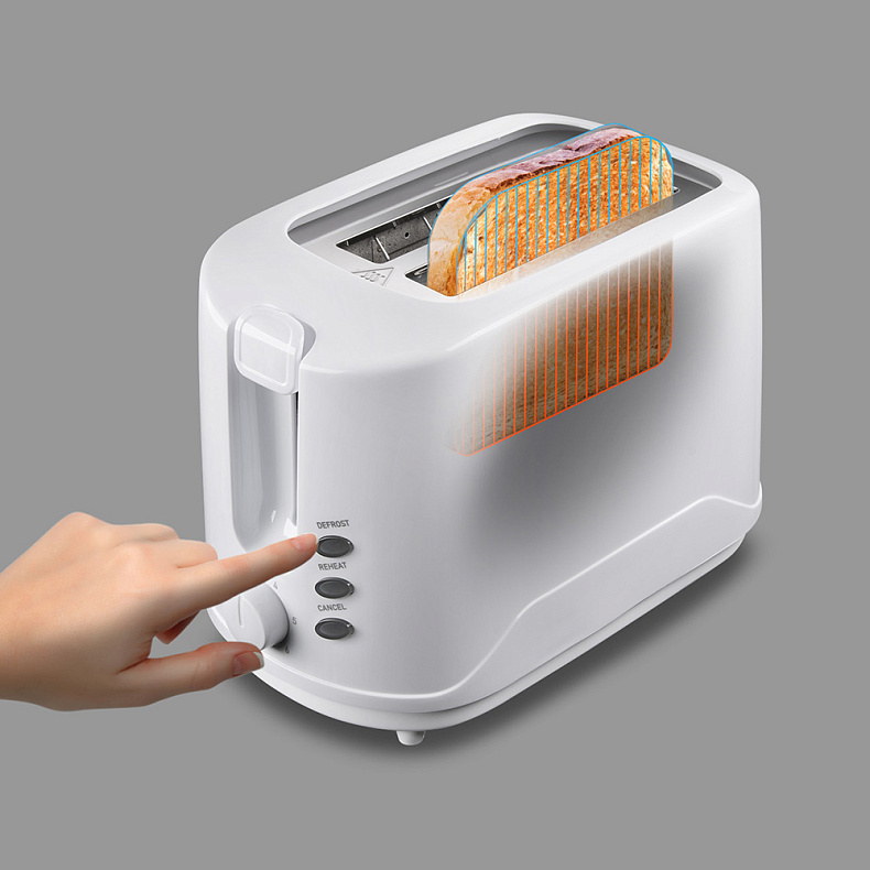 Тостер поджаривает сразу 2 хлебных ломтика. Готовые тосты автоматически поднимаются вверх, чтобы вам было удобно их вынуть.
