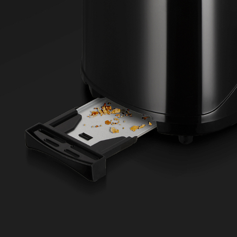 Чтобы хлебные крошки не засоряли механизм и не пригорали, в модели предусмотрен специальный поддон. Его легко извлечь и очистить.