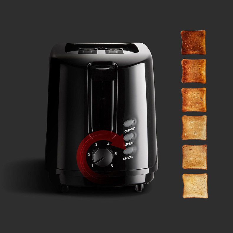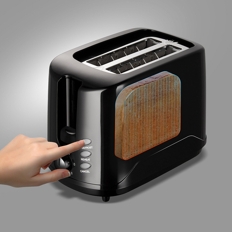 Тостер поджаривает сразу 2 хлебных ломтика. Готовые тосты автоматически поднимаются вверх, чтобы вам было удобно их вынуть.