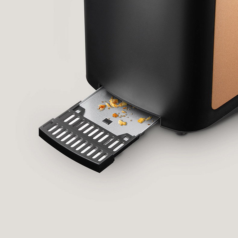 Крошки попадают в поддон во время поджаривания тостов и чистки прибора. Он легко вынимается: одним движением руки. Теперь на кухне всегда будет порядок.