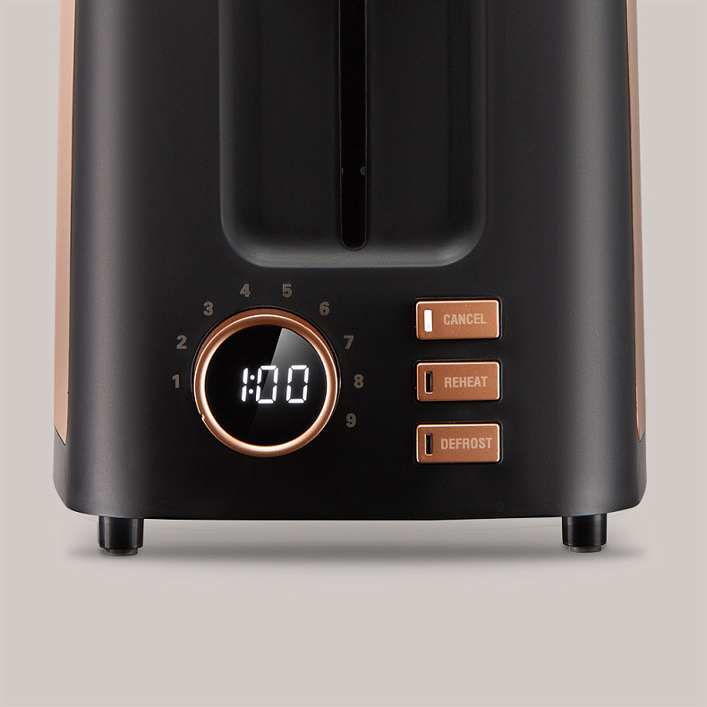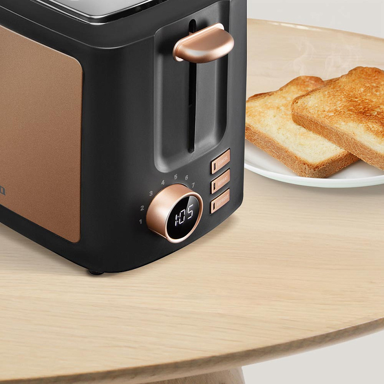 На дисплее отображается оставшееся до готовности время. Так вы точно узнаете, когда пора доставать тосты и подавать к столу.