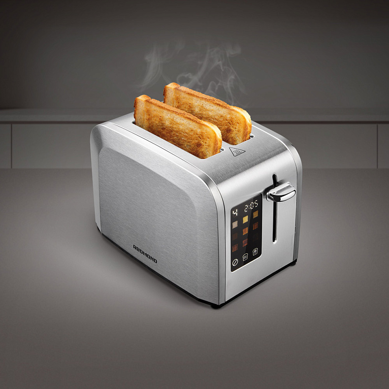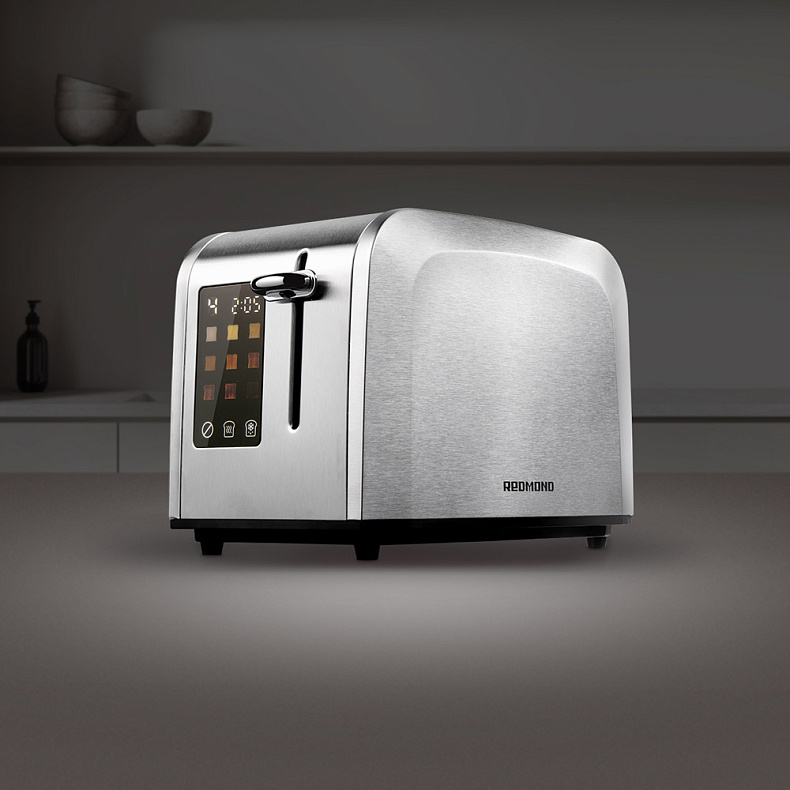 Компактный, металлический корпус, не нагревается. Тосты не горят, прикольный дисплей с сенсорным управлением, на дисплее указаны степени поджаривания и обратный отсчет времени.